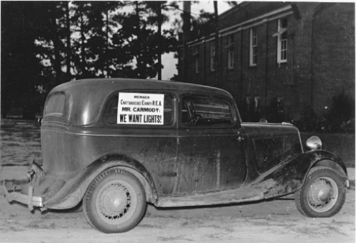 About 90 years ago, homes in the city were being hooked up to newly-built electric grids, but homes in rural areas were not. In those days in rural communities, kids had to manually carry water into the house from the outside well, clothes were washed by hand on washboards, the house - and barn - were lit by kerosene lamp (or candles), and cooking and heating were done through wood stoves that needed wood to be manually carried in from outside, and the ashes carried back out. One electric item a farm may have had is an electric radio, but those were powered by heavy batteries that needed to be recharged with things like home windmills.